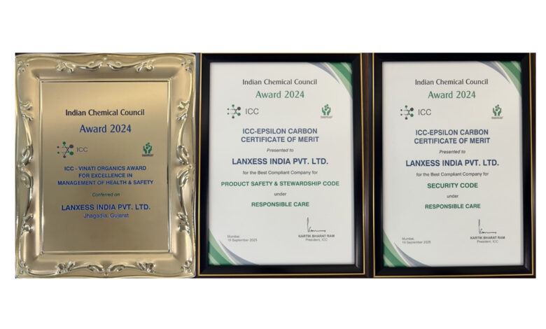 Mumbai, (Maharashtra) [India], October 13, 2025: LANXESS India has won three prestigious industry recognitions from the Indian Chemical Council (ICC) which includes ICC – Vinati Organics Award for Excellence in Management of Health & Safety for Jhagadia site and two ICC -Epsilon Carbon Certificates of Merit under Responsible Care for best compliant company for ‘Security Code’ and ‘Product Safety & Stewardship Code’. These honors reflect LANXESS’ strong commitment to safety, security, sustainability, and responsible practices.